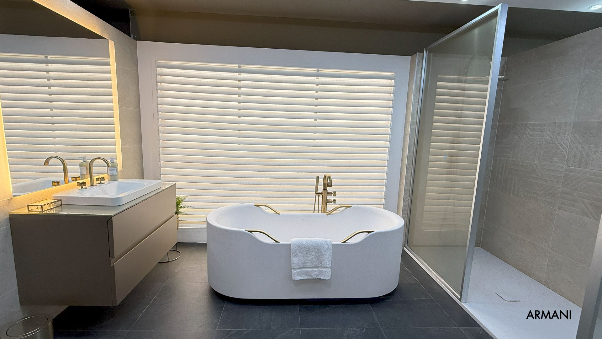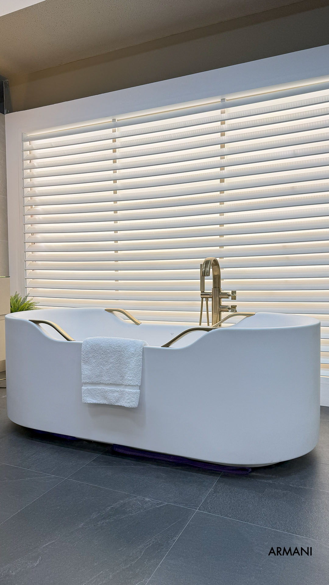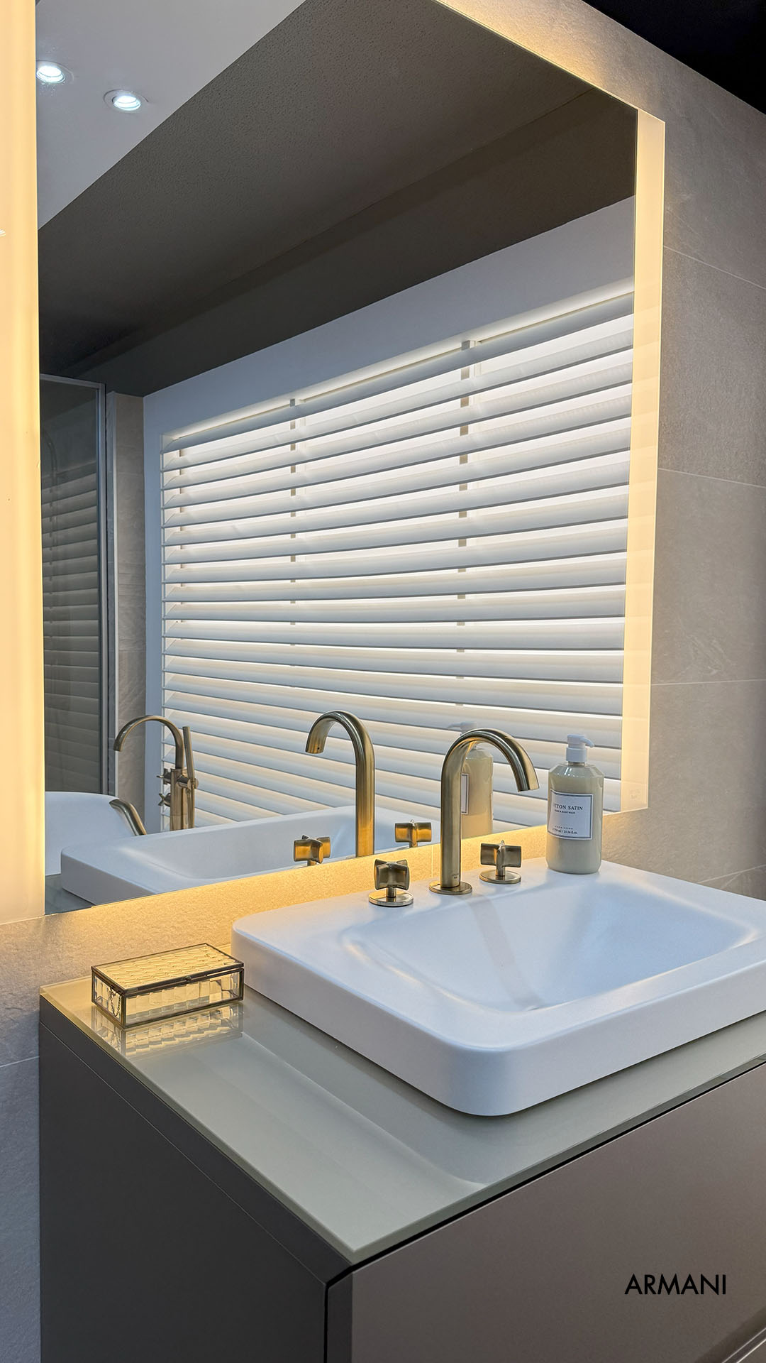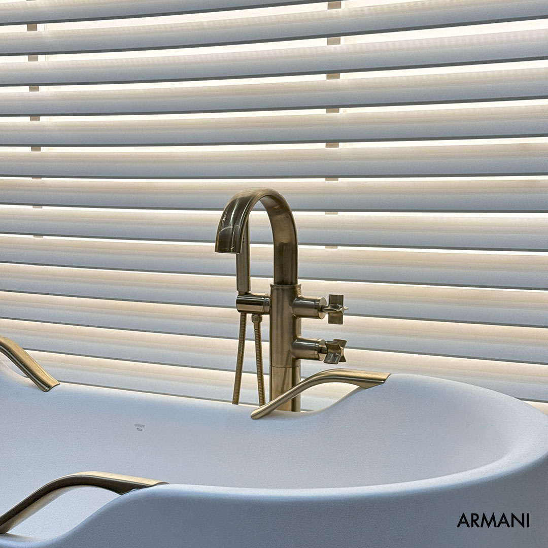 Con esta colección, Giorgio Armani apuesta de nuevo por el confort y el bienestar, mostrando su visión del universo del baño a través de una combinación de elementos polivalentes. La estética evoca de manera intencionada al pasado pero el estilo retro se actualiza mediante una interpretación moderna y la incorporación de tecnologia de vanguardia.