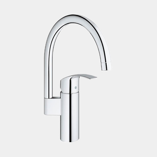 Grifo Grohe Eurosmart de cocina con caño alto giratorio y acabado StarLight. Calidad y diseño para tu fregadero en Fuerteventura. ¡Stock en Grupo Inpescasa!