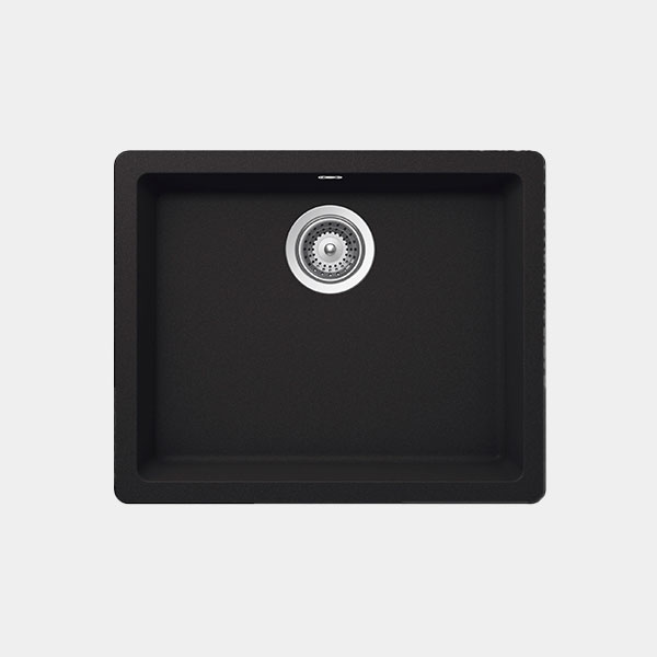 Compra el Fregadero Roca Riga 50 Negro en Fuerteventura. Diseño minimalista de una cubeta en Quarzex® ultra resistente. Elegancia y durabilidad en Inpescasa.