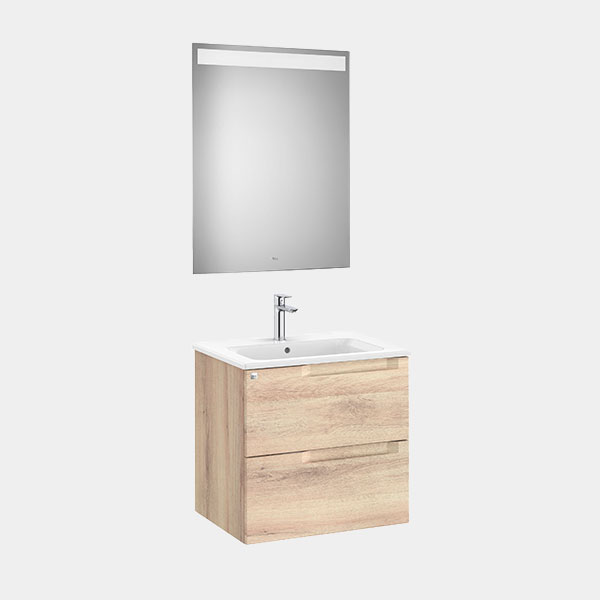 Descubre el Pack Roca Aleyda de 60 cm en acabado Beige Madera. Estilo nórdico y compacto para tu baño con stock en Fuerteventura. ¡Calidad Roca en Grupo Inpescasa!