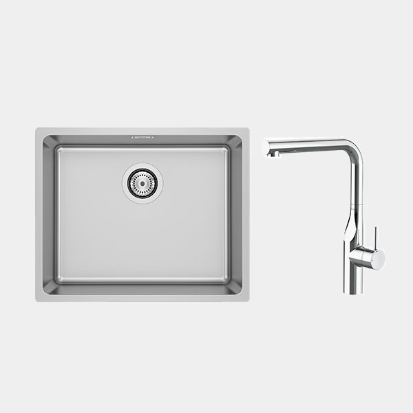 Ahorra con el Pack Fregadero Roma de acero inoxidable (50x40x20) y grifo monomando Glera de Roca. La solución completa y duradera para tu cocina en Fuerteventura con Inpescasa.