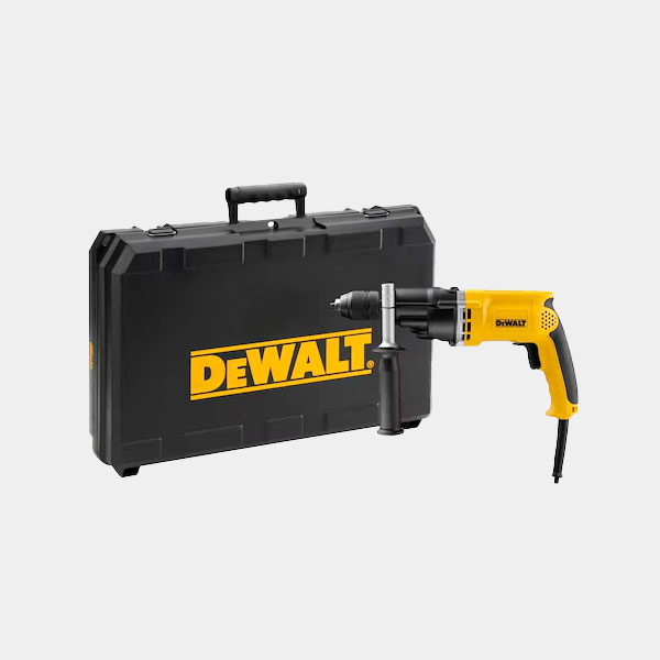 Taladro percutor DEWALT 950W con embrague de seguridad y 2 velocidades. Máximo rendimiento profesional para reformas en Fuerteventura.