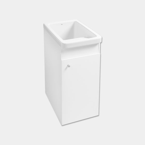 Lavadero con mueble Roca Henares en Fuerteventura. Porcelana de alta resistencia y mueble de gran capacidad. Ideal para zonas de lavado y exteriores cubiertos.