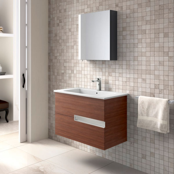 Mueble de baño Roca Victoria-N de 100 cm en acabado Wengué. Diseño robusto con 2 cajones para máximo almacenaje. Disponible con stock real en Fuerteventura. ¡Dale elegancia a tu baño!