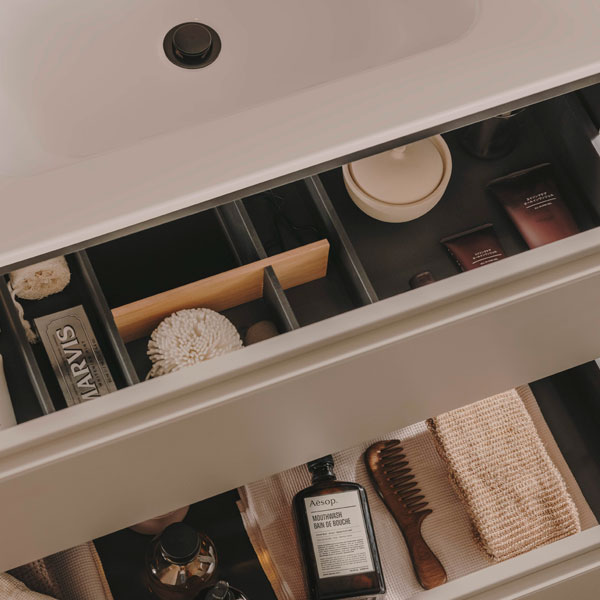 Mueble de baño Roca Volta 120cm Gris Arena en Fuerteventura. Doble cajón de gran capacidad para baños familiares. Máximo estilo y organización en un solo conjunto.